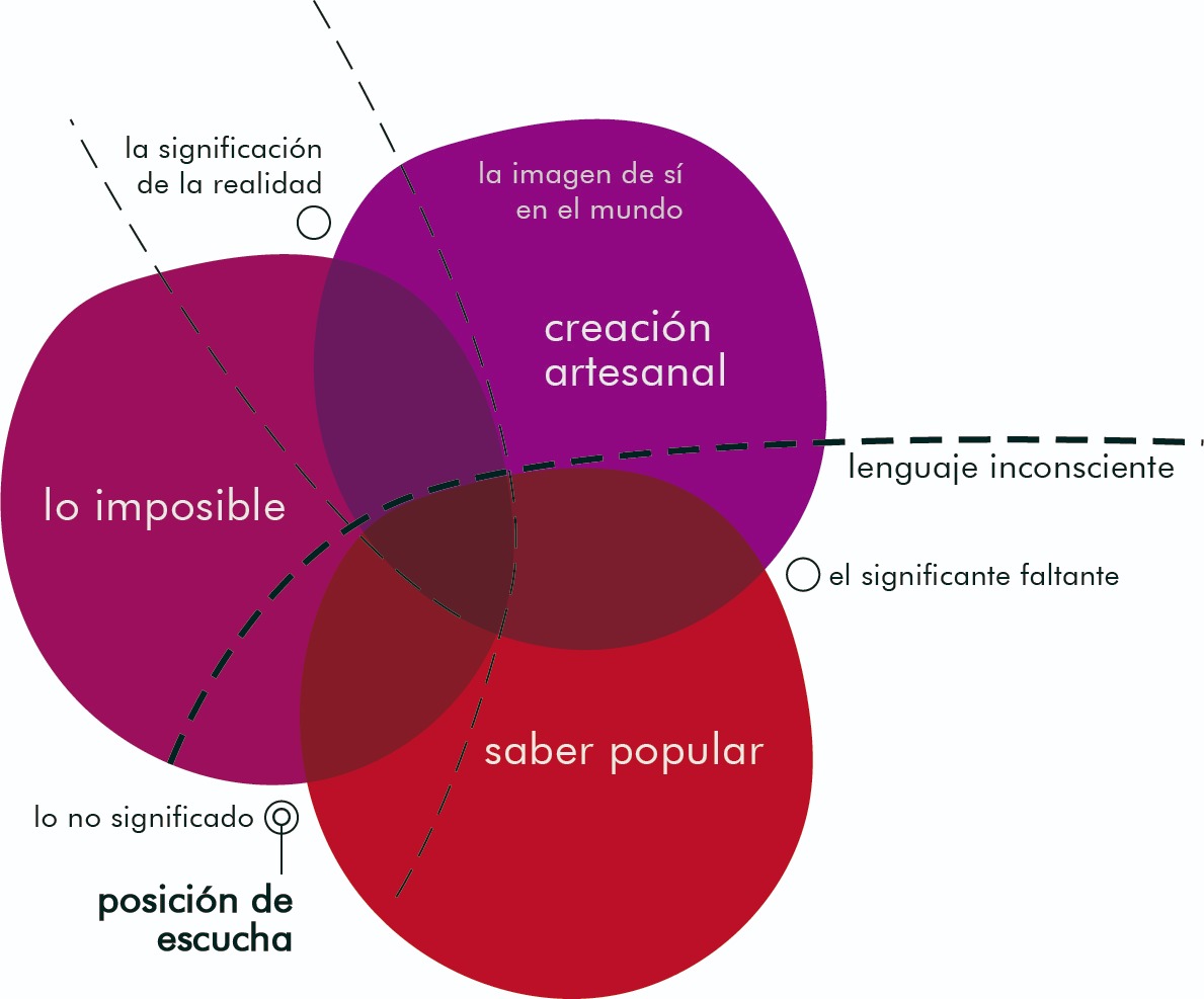 Entiende la implicación profunda de las significaciones sociales de la realidad para esa configuración subjetiva por lo cual se busca el fortalecimiento del tejido social y de las capacidades comunitarias, que operan como escenarios de contención para la activación de las solidaridades y el despliegue de las singularidades. Con este enfoque psicosocial se construye un abordaje que articula el psicoanálisis del campo lacaniano con los saberes populares y las prácticas artísticas y creativas.