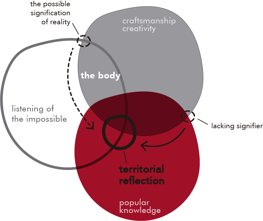 EXISTING IN-THE-WORLD. The stigmatization of informal/popular neighborhoods in Latin America is a common occurrence. While it cannot be denied that marked situations of violence and crime exist, it is rather the contradiction between a place with these characteristics and a history of resistance, struggle, and creative resourcefulness to produce a habitable space that directly impacts well-being by making it difficult to appropriate the territory—that is, when dwelling in the city becomes impossible. Researching the history of the place would allow for another reading of the territory, one not driven by contradiction but by the resistance and creative resourcefulness inherent to informal/popular neighborhoods. This would allow for the discovery of alternative forms of symbolic bond with the city (another possible signification of reality), which implies a positioning (of the body in relation to the territory) that impacts the ideal of dwelling.